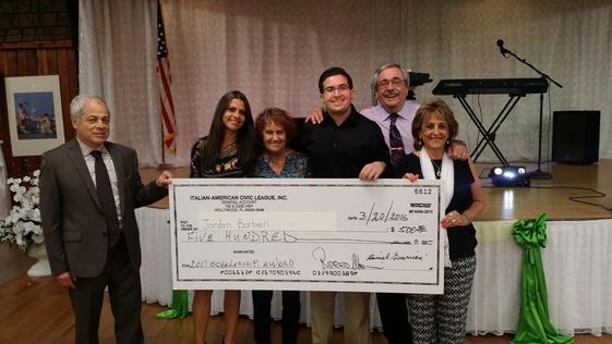 2016 -2017 President Rocco Maniaci presenting check to Scholarship Winner Jordan Barbieri along with his family.